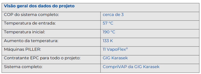 O projeto está sendo realizado na BASF em parceria com a fabricante de equipamentos GIG Karasek. O sistema CompriVAP da GIG Karasek combina os componentes comprovados evaporador de filme descendente, tanque flash e cascata de compressores PILLER em um conceito tecnológico inovador. Graças ao seu design híbrido, ele gera vapor totalmente livre de oxigênio e utiliza água pura como meio de trabalho seguro e ecologicamente correto. A operação flexível com capacidade de carga parcial contínua e ciclos de partida e parada otimizados para o preço da energia elétrica permite uma operação econômica, enquanto o monitoramento inteligente das condições aumenta a disponibilidade e reduz os custos de manutenção.